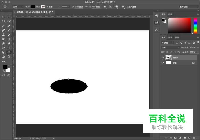 在工具栏中选择椭圆工具,然后在画布中绘制一个椭圆。