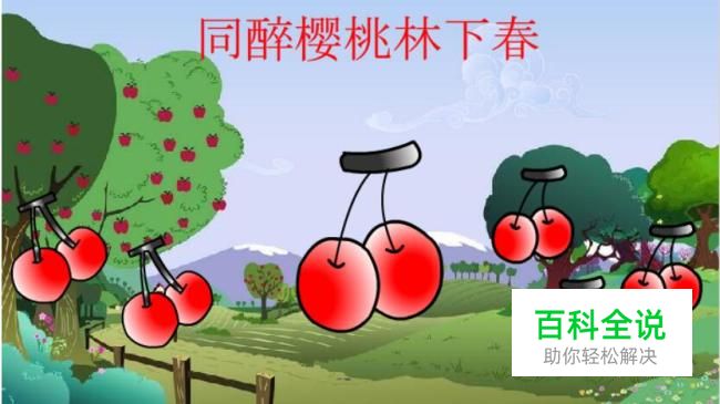 任意变形工具 在舞台上复制粘贴出更多的樱桃图片,然后使用【任意变形工具】更改图形的大小、方向和位置,如下图所示:
