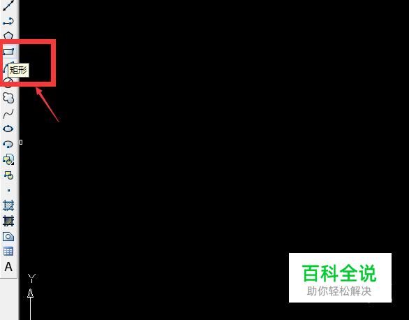 打开CAD软件,需要先在界面中画一个图形,小编这里先画一个矩形。点击左侧工具栏中的矩形工具。