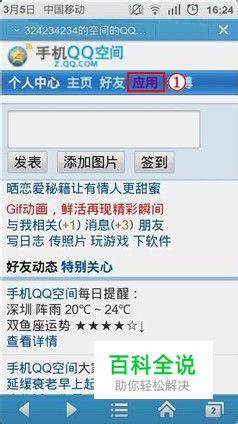 通过手机浏览器登录手机QQ空间,选择“应用”手机QQ空间网址为:z.qq.com