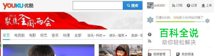 鼠标移动到自己的用户名上,会弹出一个下拉框,点里面的视频管理。