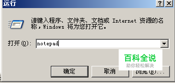 打开“开始”菜单,调出“运行”对话框,输入并运行“notepad”