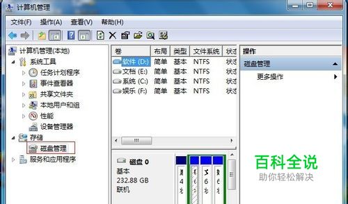 单击计算机,右键然后选择管理,进入计算机管理界面