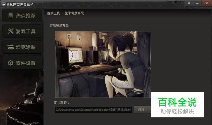 游戏工具目前包含了 游戏优化、清除插件、登录背景修改 三个小功能,登录背景可以自定义了啊 不错不错~ 游戏优化就不用赘述了,大家都经常用的,全部勾选即可 游戏登录背景是让大家自定义自己登录游戏时候的背景图片效果,选择你电脑中的一张图片即可 清除插件是当你用了一些插件觉得不习惯时用的,一键删掉你的各种插件,涂装(不包含语音包): 使用坦克世界盒子,插件使用更方便了。