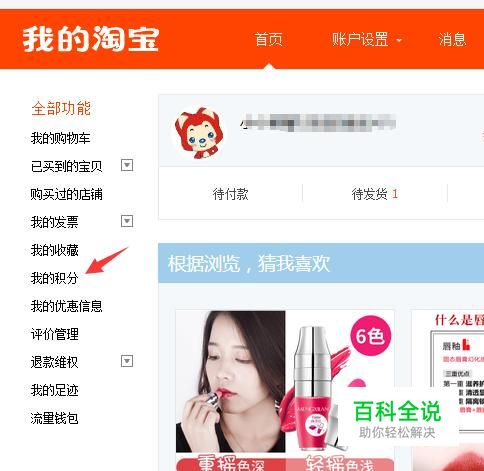 首先我们先打开淘宝网页并登录自己的账号,然后在个人首页点击我的积分。