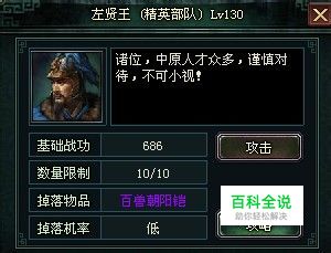 对挑战者们来说,左贤王军队阵容整齐,号令冲车一骑当先,长矛手黄金骑左右开弓,后有振奋鼓后援,看似雄武,常规的“无限虎啸流”打法便可将其完美压制、蚕食。值得一提的是,左贤王狡兔三窟,在其军营中还藏着一支神秘队伍——四夷奇兵,击败这支精英部队可是有几率获得高属性的青帝玉皇甲哟!