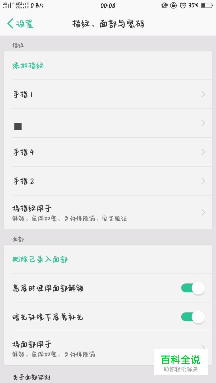 面部识别,这是oppo手机系统更新后的新增解锁方式,通过对面部展开识别来进行第一次解锁。