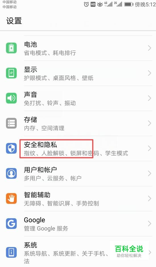 进入设置之后,我们点击安全和隐私;