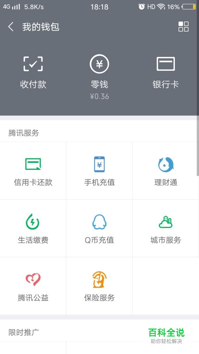进入“钱包”后,点击右上角显示的四个小方框部分。