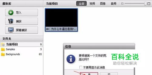 视频添加完之后,会弹出一个信息提示框,内容是“要根据第一个文件的宽高比来设置项目的宽高比吗?”这个时候就要点击“是”。