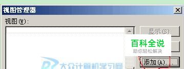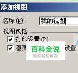 ① 启动Excel,打开相应的工作簿文件。 ②执行“视图→视面管理器”命令,打开“视面管理器”对话框,单击其中的“添加”按钮,在随后弹出的“添加视图”对话框中,输入一个名称(如“我的视图”等),确定返回。如下两图!
