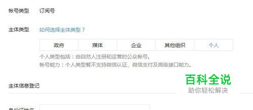 选择好注册类型,填写个人信息。个人一般选择订阅号。