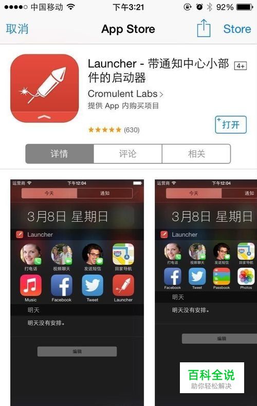 在apple store里搜索搜索launcher,点击获取输入ID密码后安装软件。
