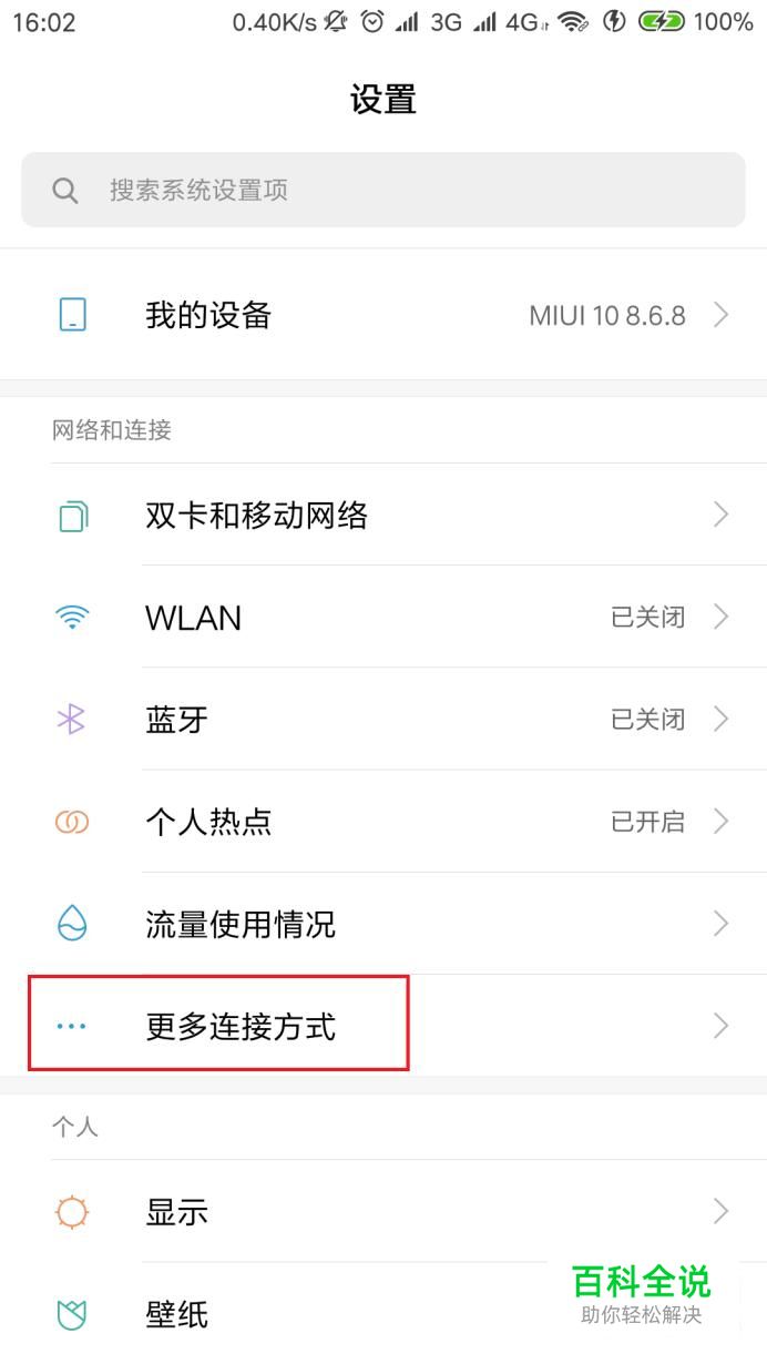 首先,打开MIUI系统设置应用,在系统设置页面中,点击“更多连接方式”选项卡。