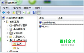 2、然后按序点击打开:计算机管理-系统工具-本地用户和组-用户,并直接右侧找到并打开Administrator;