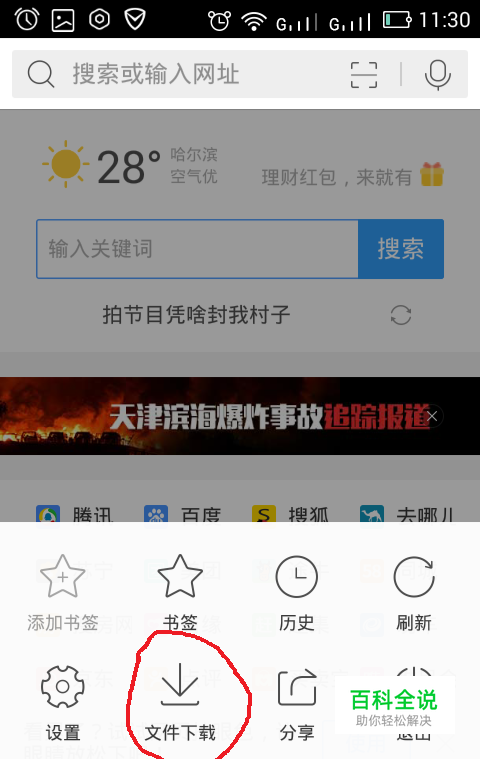 先下载手机qq浏览器。点击下方画圈设置栏