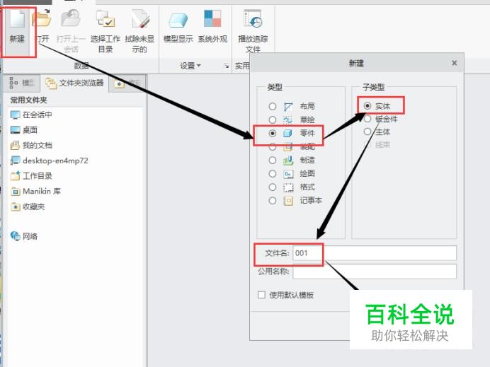 打开creo软件,创建一个新的零件,创建过程如图所示。