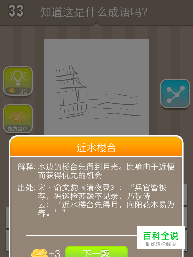 疯狂猜成语答案33-40 2025-05-31 10:11:37 操作方法 01 近水楼台 02 丑态百出 03 囊萤映雪 04 鞍前马后 05 参差不齐 06 狼狈为奸 07 肝肠寸断 08 八仙过海 赞 (0) 相关推荐 疯狂猜成语答案大全_疯狂猜成语图片答案 疯狂猜成语是一款全中文休闲益智游戏,可以和好友一起体验中国古老文化-成语的魅力,还可以通过微信分享,求助和挑战你的朋友们,看看谁才是才高八斗,学富五车的才子佳人。闭目想想: 只手遮天如果用图画来表示, ... ipone版疯狂猜成语答案(图片):[1]21-40关 疯狂猜成语21-40关答案. 操作方法 01 21关答案. 02 22关答案. 03 23关答案. 04 24关答案. 05 25关答案. 06 26关答案. 07 27关答案. 08 28关答案. ... ipone版疯狂猜成语答案(图片最新):[1]1-20关 疯狂猜成语1-20关答案. 操作方法 01 1关答案. 02 2关答案. 03 3关答案. 04 4关答案. 05 5关答案. 06 6关答案. 07 7关答案. 08 8关答案. 09 9关答案. ... 疯狂猜成语答案89-96 操作方法 01 多此一举 02 愁眉苦脸 03 马失前蹄 04 命悬一线 05 寄人篱下 06 安然无恙 07 是非不分 08 名利双收 疯狂猜成语答案73-80 操作方法 01 分崩离析 02 破门而入 03 汗流浃背 04 本末倒置 05 一马当先 06 月下老人 07 七上八下 08 春色满园 疯狂猜成语答案81-88 操作方法 01 火上浇油 02 一叶障目 03 狐假虎威 04 开卷有益 05 妙笔生花 06 模棱两可 07 环肥燕瘦 08 东拼西凑 疯狂猜成语答案9-16 操作方法 01 人仰马翻 02 死不瞑目 03 八面来风 04 顶天立地 05 黑白颠倒 06 力争上游 07 苦口婆心 疯狂猜成语答案97-104 操作方法 01 凤毛麟角 02 百步穿杨 03 全心投入 04 笑里藏刀 05 无中生有 06 逆来顺受 07 灯红酒绿 08 狭路相逢 疯狂猜成语答案49-56 操作方法 01 唇亡齿寒 02 轰轰烈烈 03 杀鸡儆猴 04 万里挑一 05 天外有天 06 花前月下 07 朝三暮四 08 如坐针毡