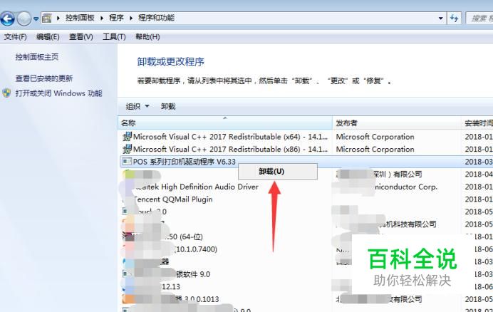 在下面的列表里找到打印机的驱动,然后选中它右键点击卸载,如下图。