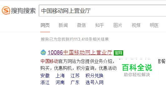 首先,在搜狗浏览器中输入中国移动网上营业厅,并点击回车键,如下图所示。