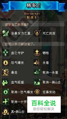 转职后学习技能 狂战士(Berserker)转职后新增技能如下