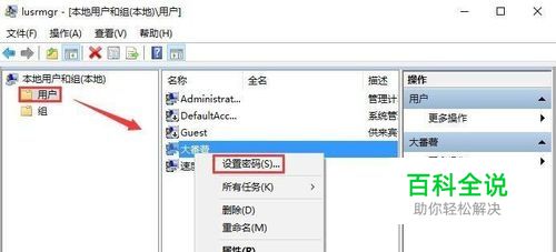 随后选中用户,右键点击想要重置密码的帐户选择设置密码,如图所示: