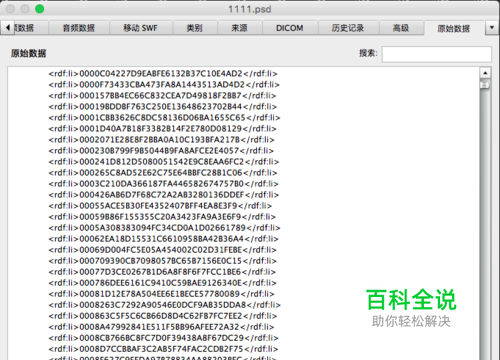 有时候打开一个PSD文件,里面明明没有几个图层却占用了上G的空间,使操作起来特别慢,其原因是在ps的操作中有一些缓存的数据被保存在了PSD文档中,首先我们来看一下这些影响ps文件大小的信息隐藏在什么位置,ps中执行{文件}-{文件简介}-{原始数据}命令,如图,里面有非常多的脚本信息,同样我们也是利用脚本文件来解决这一问题,废话不多说,看方法: