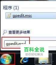 我们点击Windows7旗舰版桌面左下角圆形的开始菜单按钮,在搜索框中输入:gpedit.msc ,点击搜索出来的程序,进入组策略设置窗口。进入以后Win7桌面下方的任务栏会出现一个红色工具箱的图标。
