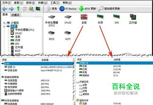 如图,可以查看电脑硬件方面众多配置信息。 点击[主板],里面包含了CPU、主板及内存条等信息选项,分别点击CPU、主板、内存可以查看相应的详细硬件信息。