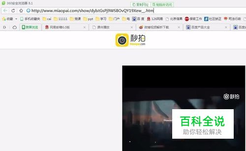 打开“秒拍”视频播放页面,并在“秒拍”视频的播放地址栏,找到该页面的地址,并复制该地址。