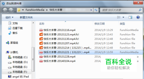 单击右上方“资料库”,出现添加的视频文件,单击视频文件,点击“添加到”,再点击“***的iPad”即可传输文件。