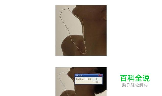 具体操作:使用“钢笔工具”选择出脖子和下巴部分的轮廓,使用快捷键“Ctrl+Enter”将路径转换为选区,并进行适当的液化处理(这里的液化数值为1像素),执行“滤镜”菜单中的“液化”命令,将多余轮廓向内侧进行液化处理。