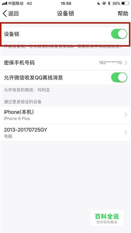 最后点击开启设备锁开关,如下图所示。这样设置完成,我们下次要在陌生设备上登陆我们的QQ就需要手机验证了。