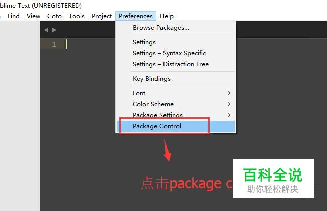 然后点击Preferences菜单,在弹出的下拉菜单中选择Package Control选项,如下图所示
