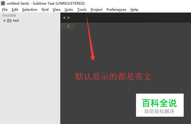 首先我们打开Sublime Text编辑器,观察一下顶部菜单的语言类型,确实是纯英文的环境,如下图所示