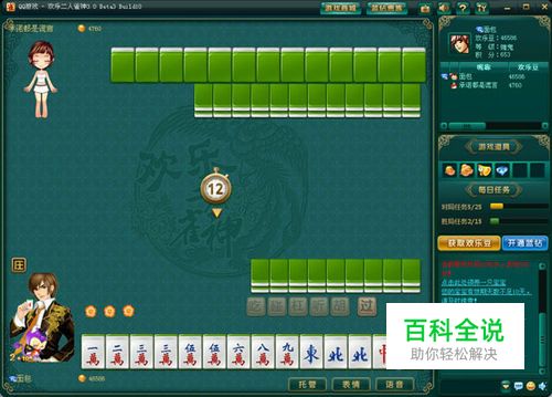 庄家掷骰,两颗骰子的总和所得的点数就是开牌的基数。以庄家为第一位,按逆时针方向顺序点数,数到点数的位置为开牌的牌墙。从右向左依次数到与点数相同的那一墩,由庄家开始抓下两墩牌,下一家再按顺时针方向顺序抓牌,直到每个人抓3次共12张牌,再由庄家跳牌抓上层两张牌,闲家再抓一张。庄家共有14张牌,闲家有13张牌。 【等级】等级 菜鸟 生手 赌客 赌棍 赌鬼 老手 高人 老千 千王 赌王 赌神 赌圣 赌仙 万赌之王 积分 100以下 100 200 400 600 800 1000 2000 4000 6000 10000 20000 50000 100000 【算分】1番=1分=15欢乐豆 【房间配置】新手场:每番对应15欢乐豆,进房下限1000欢乐豆,进房上限20万欢乐豆。 【逃跑】逃跑扣除的欢乐豆数量为房间系数*200,同时按比例分给未逃跑的玩家。