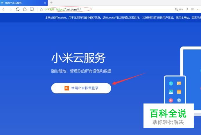 在浏览器的地址栏中输入i.mi.com,访问小米服务官网