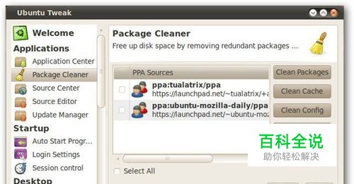 打开Ubuntu Tweak,并在左边的列表中选择Package Cleaner。 点击右边的Purge PPAs按钮。如果PPA列表为灰色,请单击“解锁”按钮并输入管理员密码。
