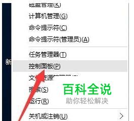 右击桌面左下角的“Windows”按钮,从其右键菜单中选择“控制面板”项。