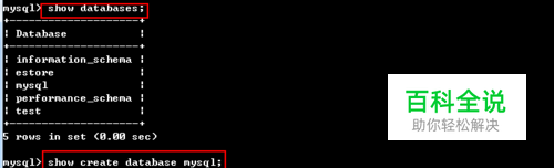 查询所有数据库:show databases; 查询当前数据的编码表:show create database 数据库名; ,如下图所示:
