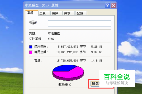 在打开的磁盘属性窗口中,单击 磁盘清理选项,接下来电脑则会自动计算所在磁盘可释放空间!