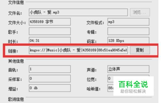 在这里我们就可以查看到歌曲链接了,你学会了吗?赶快动手试一试吧。