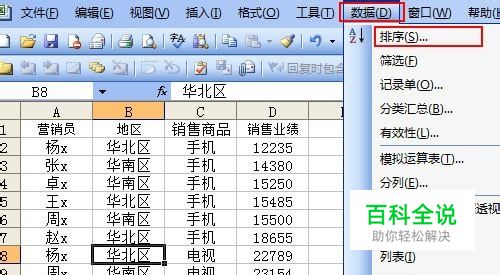 选择数据区域内的任意单元格,点击“数据”,选择“排序”。