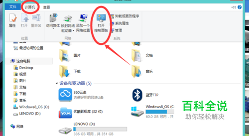 把“我的电脑”打开,在里面找到计算机这一个栏目,打开计算机栏目中“打开控制面板”。