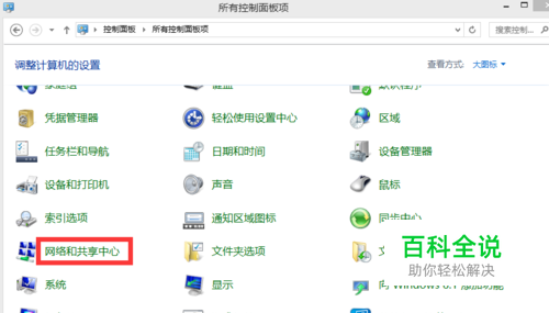 在所有的控制面板选项中找到“网络与共享中心”然后点击进去。