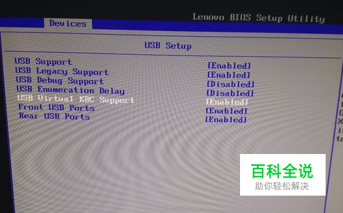 做好系统后重启进入电脑bios,选择第二标签DEVICES,选择USB SETUP选项