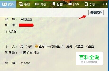 进入个人资料后,看到的是你之前的相关资料点击【编辑资料】按钮。