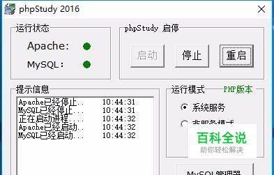 phpStudy使用教程-主界面介绍及按钮功能说明
