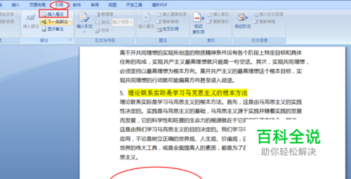第一步,找到文档中需要插入尾注的说明的位置,在这里找到【引用】-【插入尾注】,这时候尾注就插入进来了。