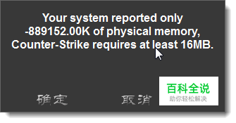 如果打开cs1.5的话,大家会发现如图提示。字面意思就是物理内存不足,你的系统还是负的物理内存!